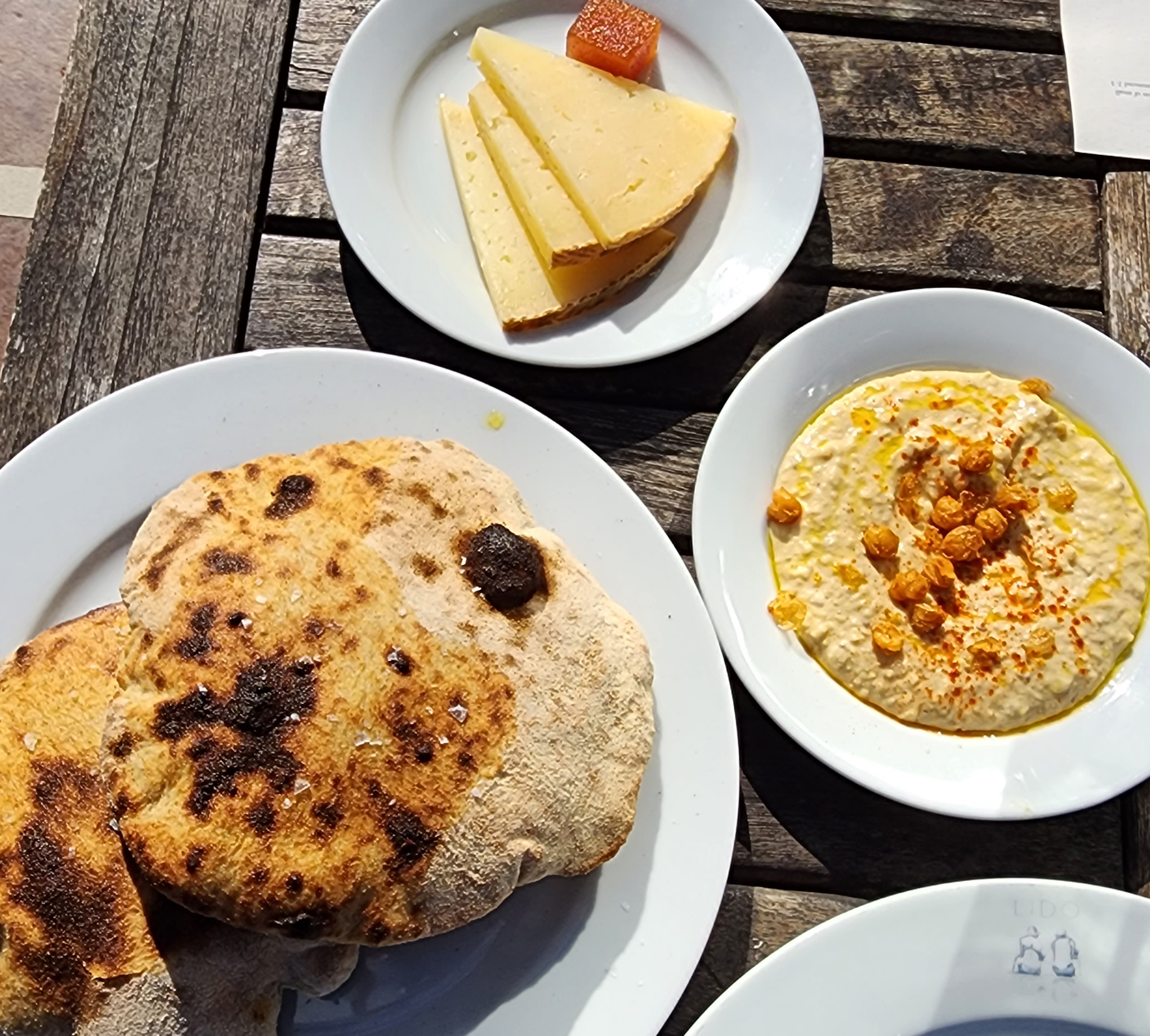 Which brings me to the meal. Oh my goodness, what a treat. Daughter, a gifted gourmet and chef-dietitian in training, still reminisces about the fancy drinks, scrumptious cheeses, and delectable spreads on freshly-baked sourdough flatbread.