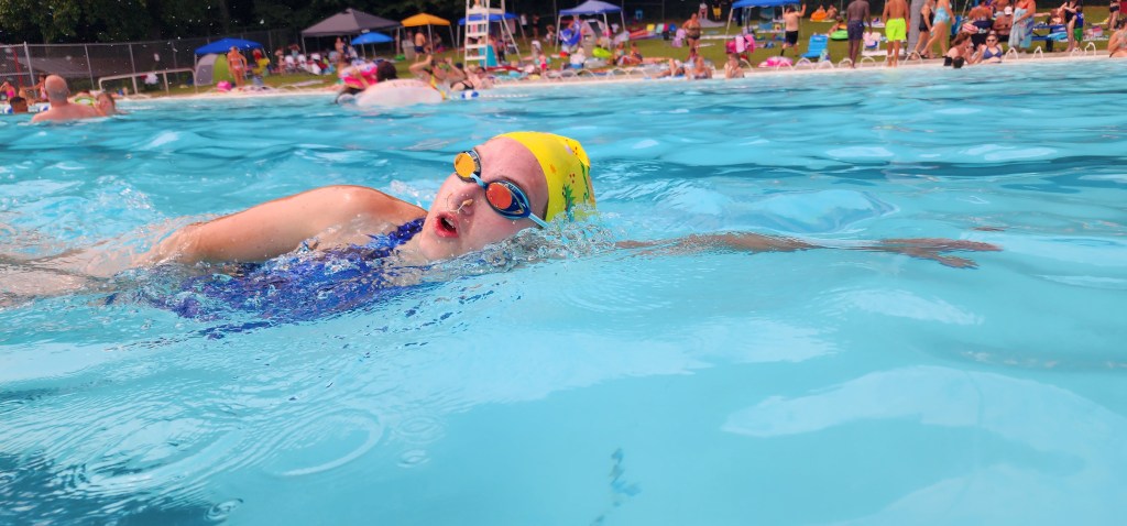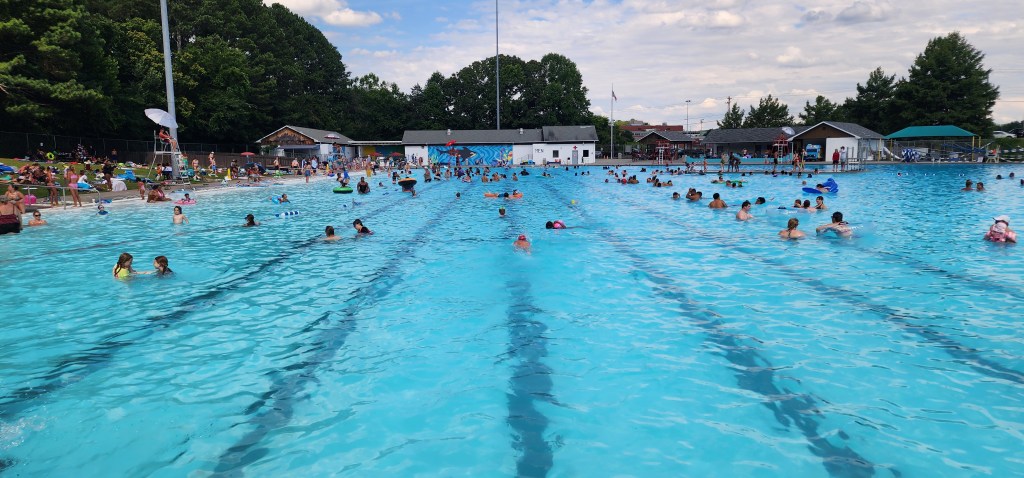 So I remembered last weekend’s swims at a much cooler operation in every aspect of that word. Oak Ridge Outdoor Pool, which I visited in 2021 and featured in a previous blog entry, is an enormous spring-fed respite, with water temperature typically in the mid-70s.