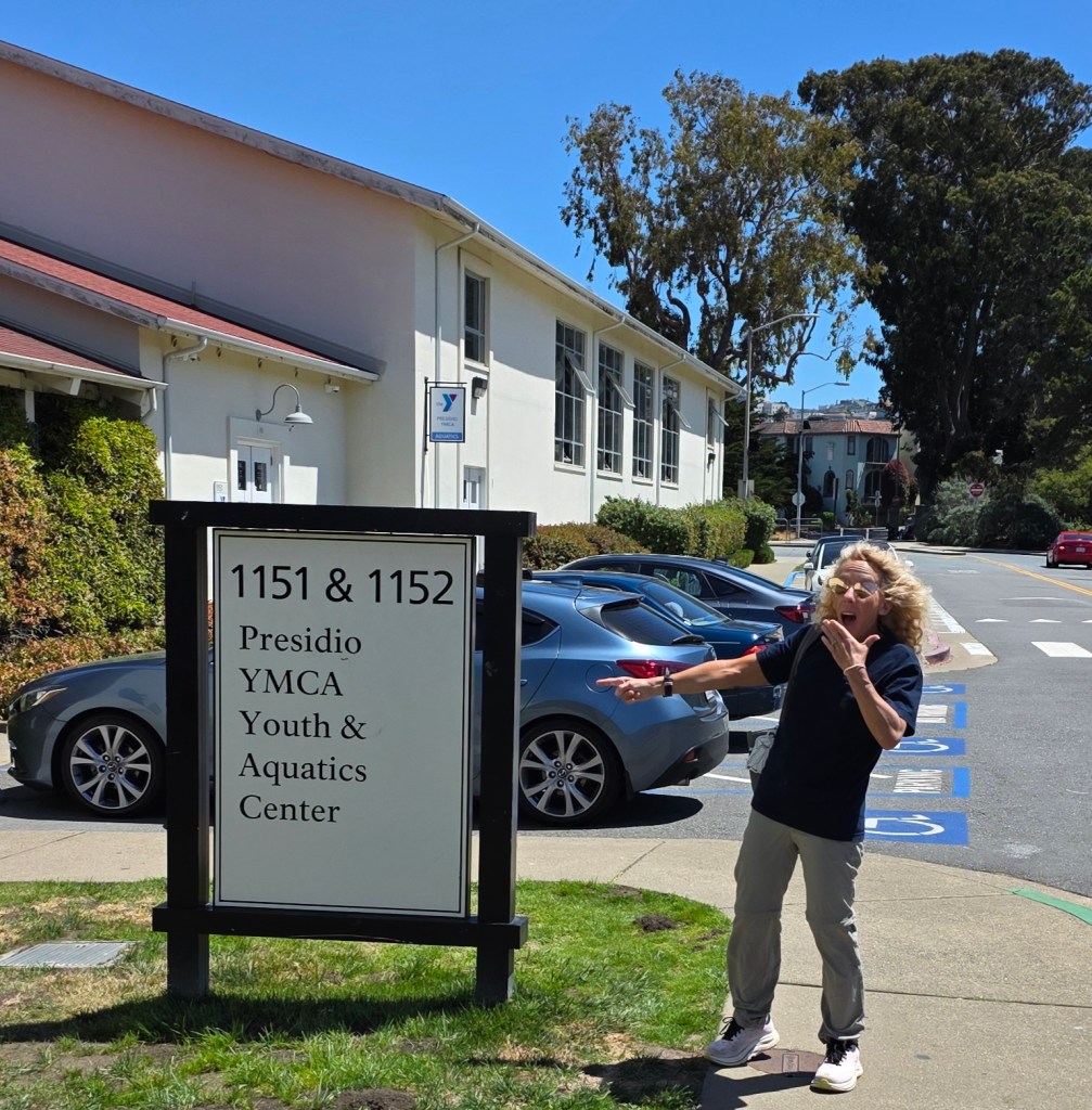 To experience it all, I’d practically have to move at lightspeed! Swim-ergency kit in hand, we took off for the Letterman Pool at the Presidio YMCA. Yes, this National Park has mixed use buildings, including a Y! After introducing ourselves to the very interested staff, I checked in, dove in, and blasted through a fast 1000 yards. With plenty of windows, this pool was well-lit and welcoming. I particularly enjoyed the large, bright mural of the Army swimmer. Very fitting, as once upon a time, Army swimmers worked out on this base.