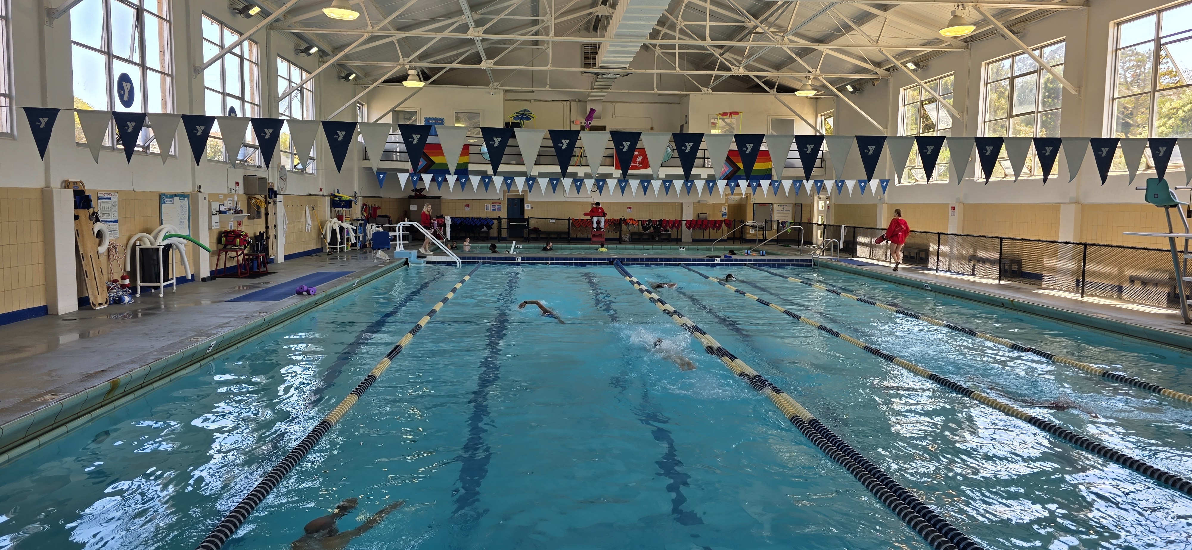 After 43 years, the YMCA reopened on the decommissioned Presidio grounds in three rehabilitated former Army buildings. One of those buildings contains the aquatic center – a six-lane, 25 yard competition pool and a shallower family pool. According to the staff, this aquatic center had housed the post pool, which the Y had renovated.