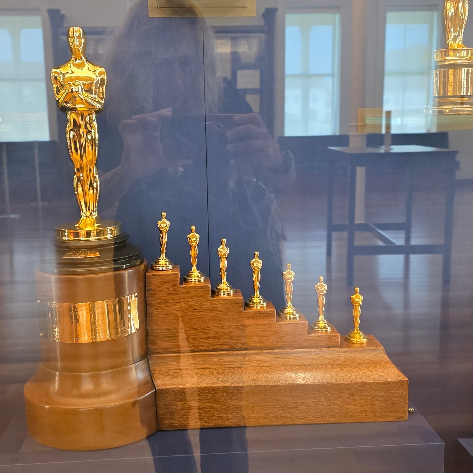 Right image: Academy Award for Snow White and the Seven Dwarfs. Presented in 1938.